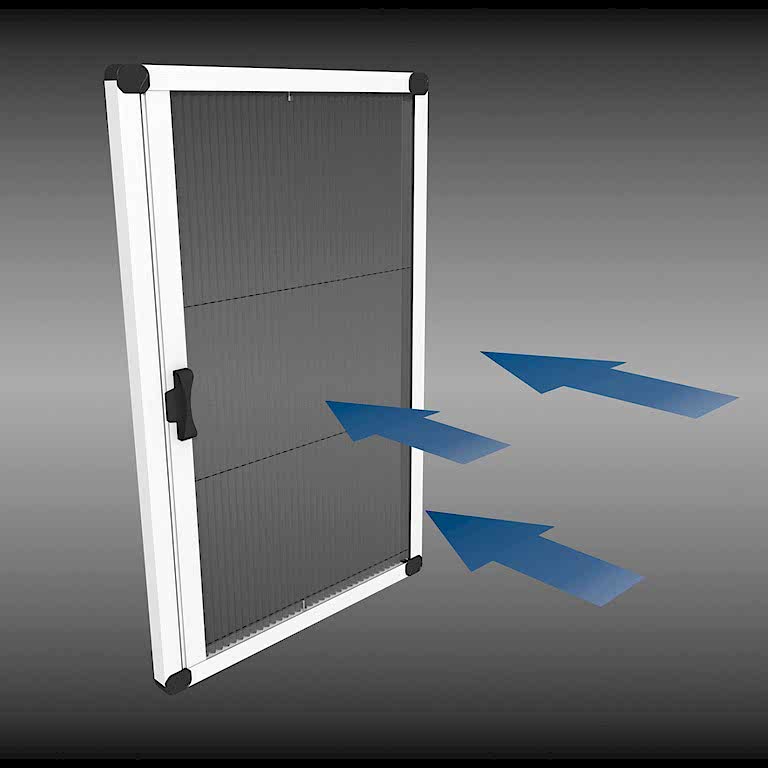 Bu sayede hem tül dış etkenlerden korunarak ömrü uzar hem de görüntü kirliliği yaratmaz. Fransız balkonlar, dar alanlardaki pencereler ve modern tasarımlı evler için oldukça uygundur. Yaylı bir mekanizma ile çalıştığı için pratik bir kullanım sunar. Plise (Pileli) Sineklik, son yılların en popüler ve fonksiyonel modellerinden biridir. Akordiyon şeklinde toplanan pileli tülü sayesinde oldukça şık bir görünüme sahiptir. Hem yatay hem de dikey olarak çalışabilir. Özellikle geniş kapılar, Fransız balkonlar, veranda ve bahçe çıkışları gibi büyük açıklıklar için en ideal çözümdür. Diğer sistemlerin uygulanamadığı geniş alanlarda bile rahatlıkla kullanılabilir. Durdurma mekanizması sayesinde istediğiniz noktada bırakabilirsiniz, bu da geçiş kolaylığı sağlar.